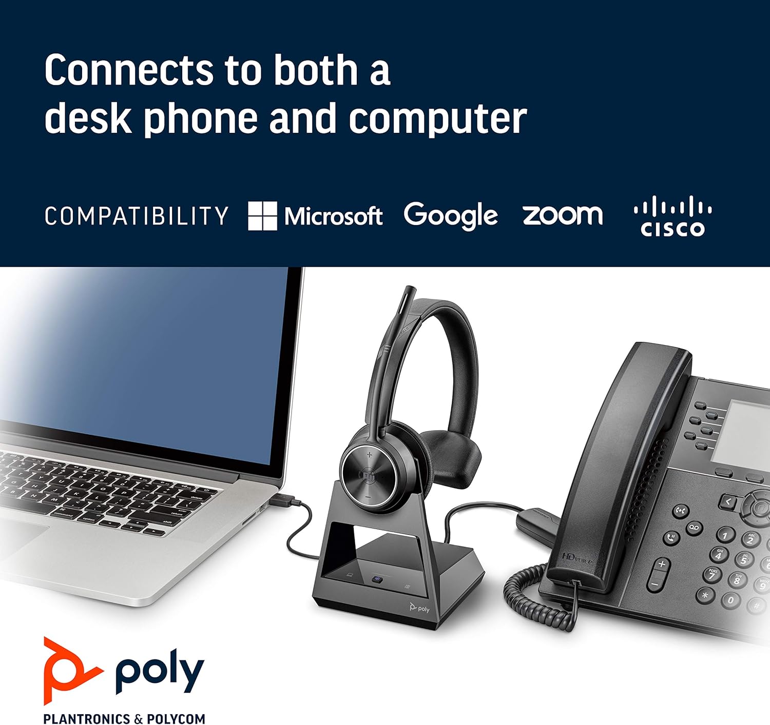 - Compatibility: Optimized for a wide range of Poly desk phones and compatible with over 800 desk phones across the industry. Future proof your headset with call control support for new softphones and the ability to manage multiple softphones with Poly Hub